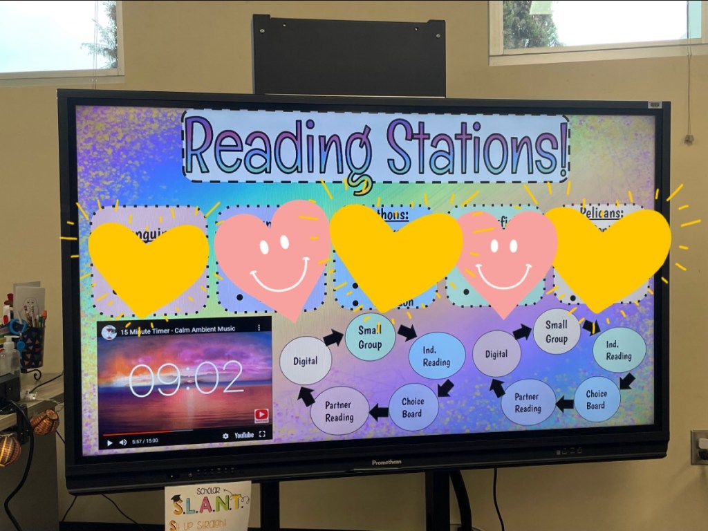 I’ll admit it – I’ve jumped on the pastel rainbow bandwagon and there’s no turning back!!!! (Well maybe, when the next adorable trend turns my head… but for now… I’m all about those rainbows!) Rainbows have brought me joy since I was a kid in the 80s and I am more than happy that they are again surfacing as super cool (I was super cool back then, right?? – Don’t answer that.) I walked by 3rd grade teacher Barbara Pinto‘s classroom last week more than once and was intrigued not only by the rainbow title text, but also by her blended learning slide (but more on that another time).